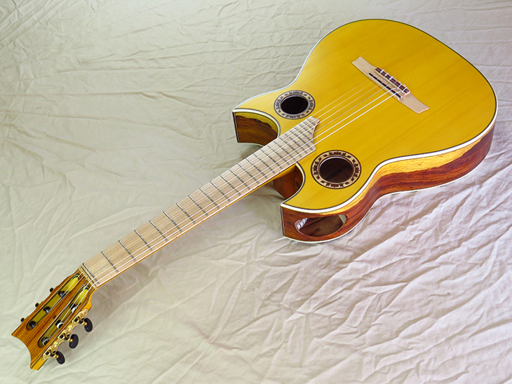 Model: Francisco Simplicio 1932 24 Frets Top: Norway Spruce Bridge: Cremona Maple Double Fretboard: Brazilian Naseberry & Cremona Maple Triple Fingerboard: Maple (with Radius) Back & Sides: Brazilian Rosewood Color: Yellow/Natural
